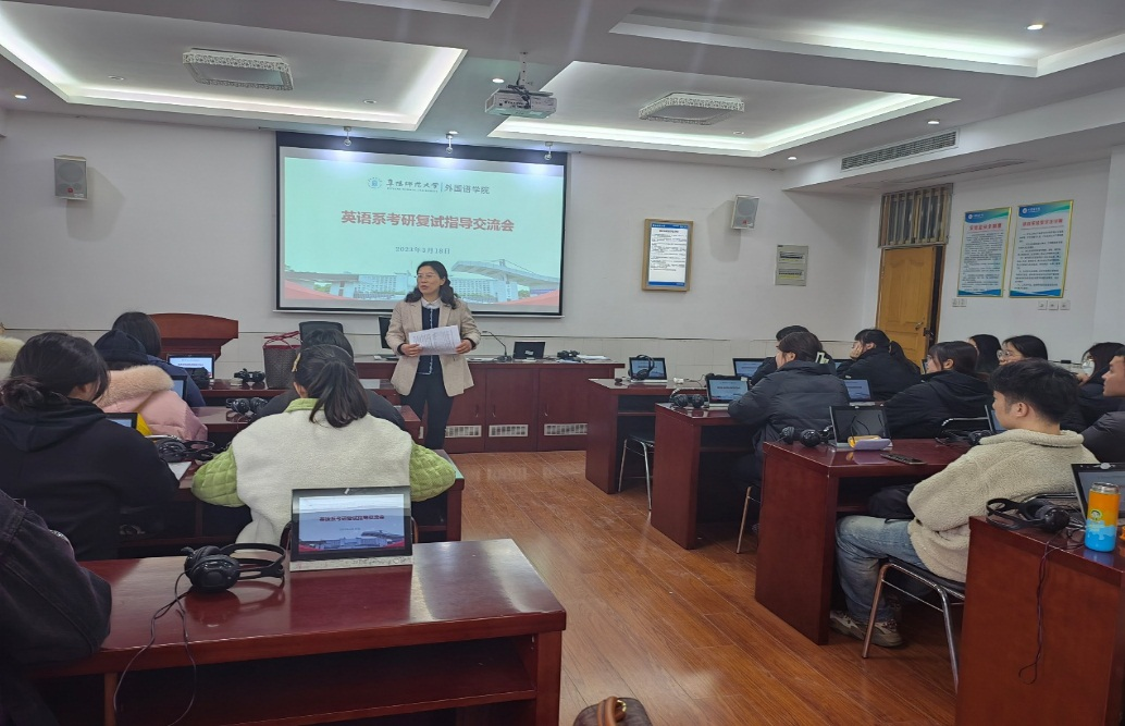 为深入学习贯彻党的二十大精神,坚持以学生为本,3月18日下午,英语系教师党支部在主楼503为2023届考研达线学生举行专题复试指导主题党日活动,助力考研学子在复试中取得优异成绩。活动由系党支部书记张艳主持。