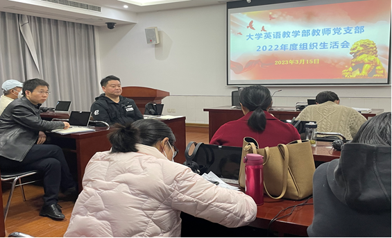 3月15日下午,大学英语教学部教师党支部在景行楼503召开2022年度组织生活会暨民主评议党员活动。会议由支部书记杨波主持,学院党委书记刘张飞以普通党员身份参加组织生活会,学院党委副书记、院长赵从义与会指导,支部在岗党员全体参会。