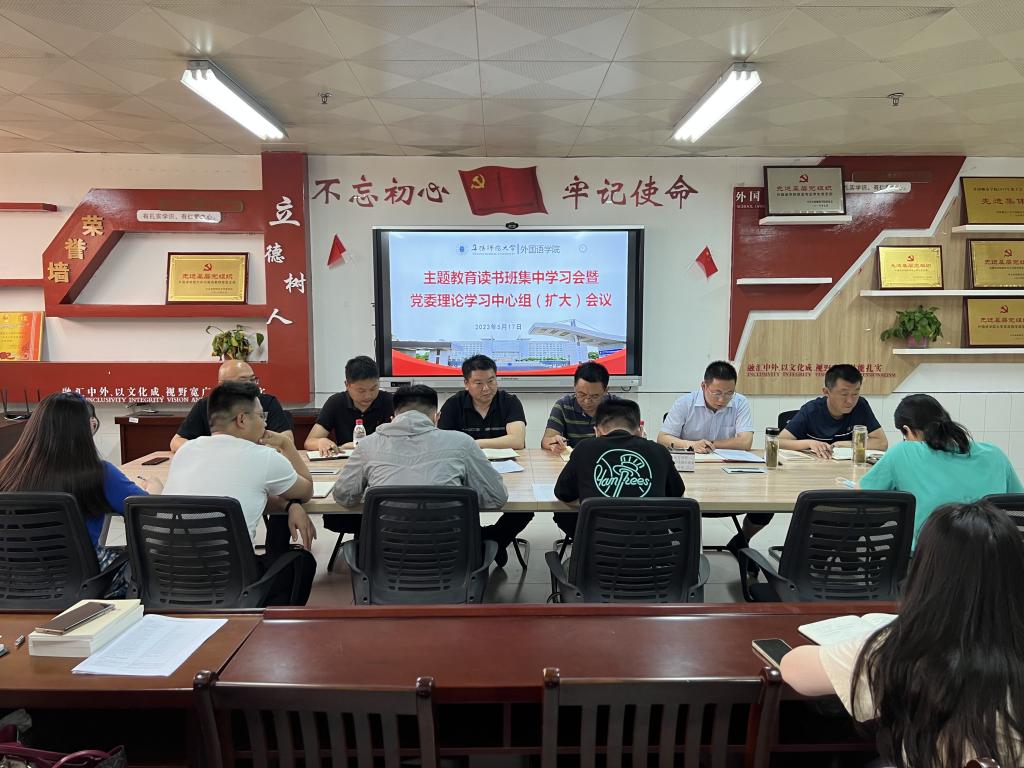 5月17日下午,外国语学院召开学习贯彻习近平新时代中国特色社会主义思想主题教育读书班集中学习会暨党委理论学习中心组(扩大)会议。外国语学院党委书记刘张飞、党委委员杨波、党支部书记刘强强、科级干部刘剑桥分别围绕《习近平关于调查研究论述摘编》、党的二十大报告、《中国共产党章程》和《论党的自我革命》做主题交流发言。