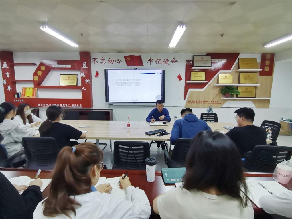 6月3日,研究生党支部在景行楼816会议室开展主题教育理论学习会议。支部成员就党员“三问”做交流研讨,支部书记陈睿开展《二十大报告要点中英文版学习》专题党课。