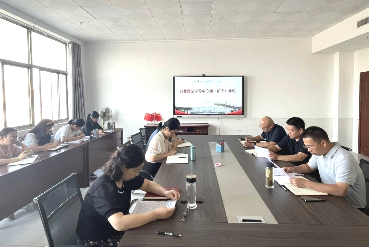 9月25日,外国语学院在景行楼802会议室召开党委理论学习中心组(扩大)会议,专题学习研讨习近平总书记在全国教育大会上的重要讲话精神。学院党委班子、支部书记、科级干部、工会主席、行政秘书及全体辅导员参加会议。会议由党委书记刘张飞主持。