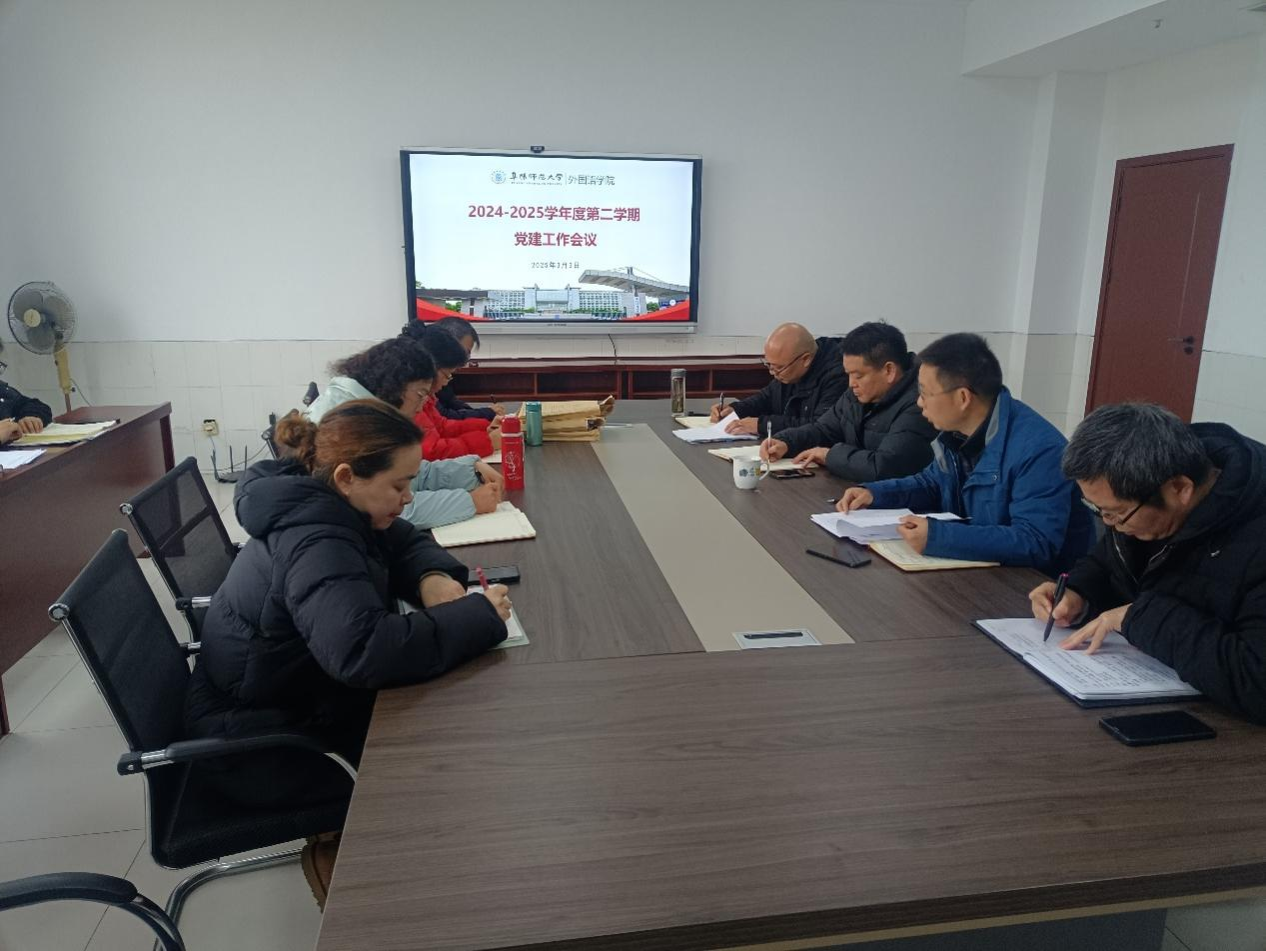 3月3日上午,外国语学院召开专题会议,研究部署新学期党建工作。学院党委班子、党委秘书,各支部书记、团委书记参加会议。会议由党委书记刘张飞主持。