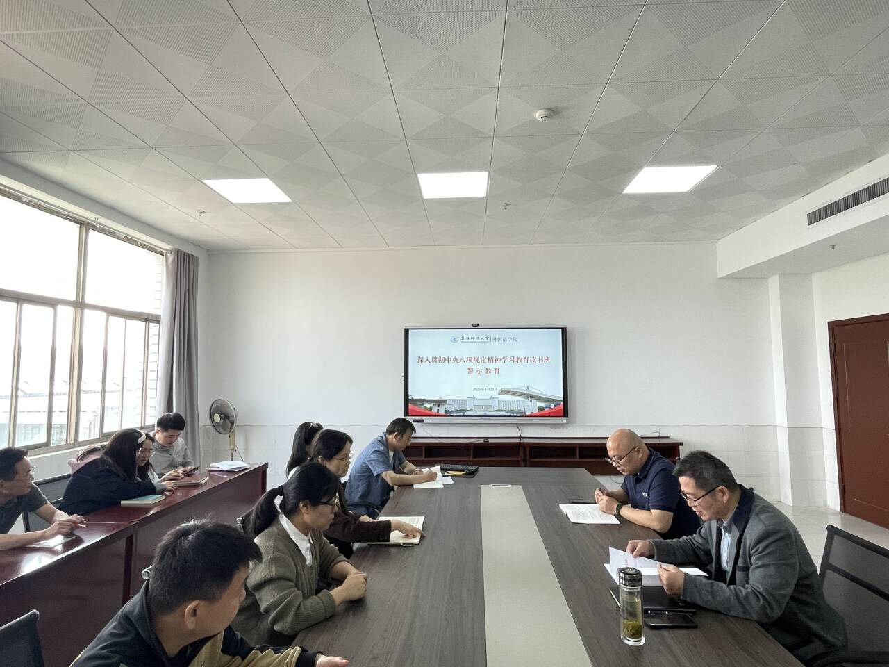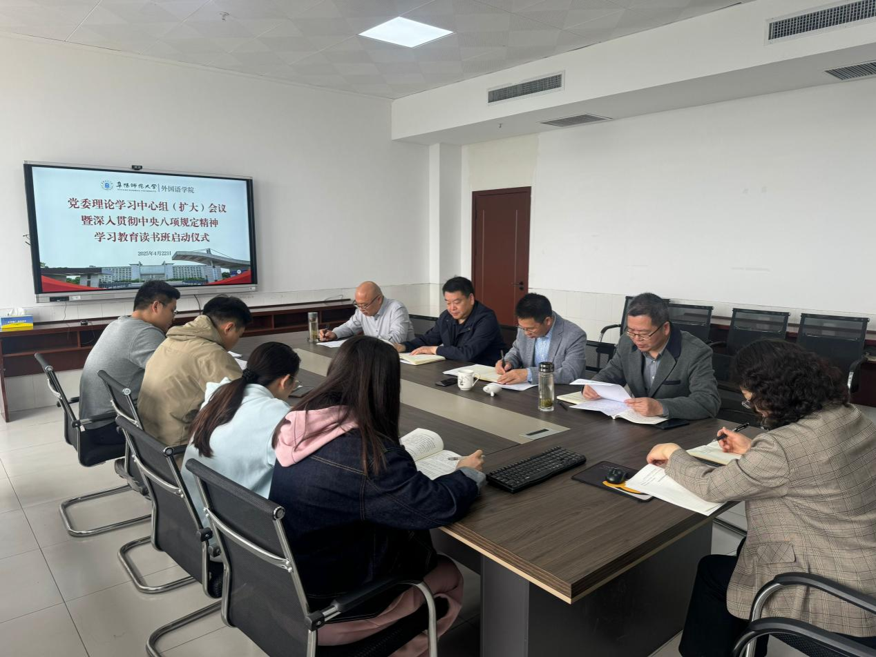 4月22日至23日,外国语学院举办深入贯彻中央八项规定精神学习教育读书班。学院党委书记刘张飞主持相关活动并讲话,学院领导班子成员及支部书记全程参与读书班学习活动。