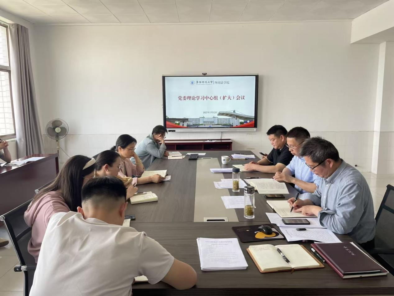 5月12日上午,外国语学院召开党委理论学习中心组(扩大)会议,持续开展深入贯彻中央八项规定精神学习教育。学院党委班子、各党支部书记、全体辅导员参加会议。学院党委书记刘张飞主持会议。