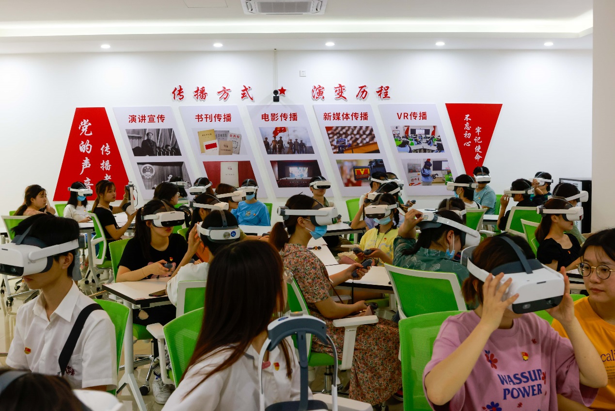 “太先进了”“燃爆了”“原来党史学习教育也可以这么潮的”,参与体验的同学纷纷表示:“虚拟仿真技术让我们更加身临其境的感受到了党奋斗历程,精彩的微宣讲让我们更加深刻的领悟了习近平总书记对大家谆谆教诲和殷殷期待。作为一名新党员,人生第一个主题党日活动,就是在建党百年之际进行入党宣誓,意义非凡、终身难忘。我们一定要永远牢记入党誓词,践行初心使命,坚定理想信念,勤勉学习,踏实工作,为实现中华民族伟大复兴中国梦贡献力量。”