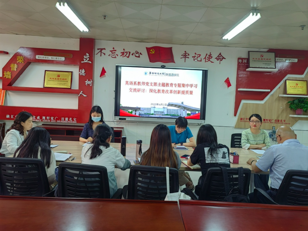 为深入开展学习贯彻习近平新时代中国特色社会主义思想主题教育,6月2日,外国语学院英语系教师党支部组织开展主题教育集中专题学习研讨。党委委员、副院长高福猛出席,英语系教师党支部书记张艳主持,支部全体党员参加学习。
