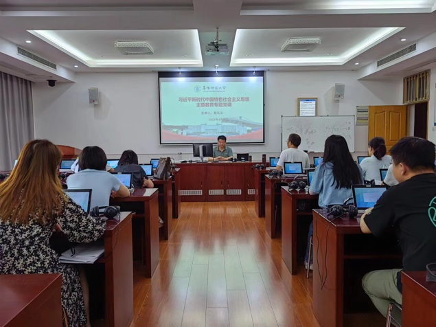 为深入学习贯彻落实党的二十大精神和习近平总书记关于教育的重要论述,6月9日,翻译与日语系教师党支部在景行楼503教室召开学习贯彻习近平新时代中国特色社会主义思想主题教育学习会暨文化强国主题研讨与师德师风警示教育交流会。会议由支部书记蒋文干主持,支部全体党员参加,采用线上线下结合的方式进行交流。