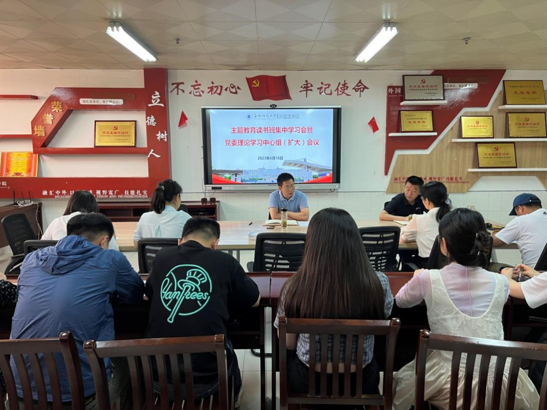 6月16日上午,外国语学院举行学习贯彻习近平新时代中国特色社会主义思想主题教育读书班第三次专题交流研讨暨党委理论学习中心组(扩大)会议。学院党委书记刘张飞主持会议,党委班子、支部书记、系部主任、辅导员及科级干部等参加学习。
