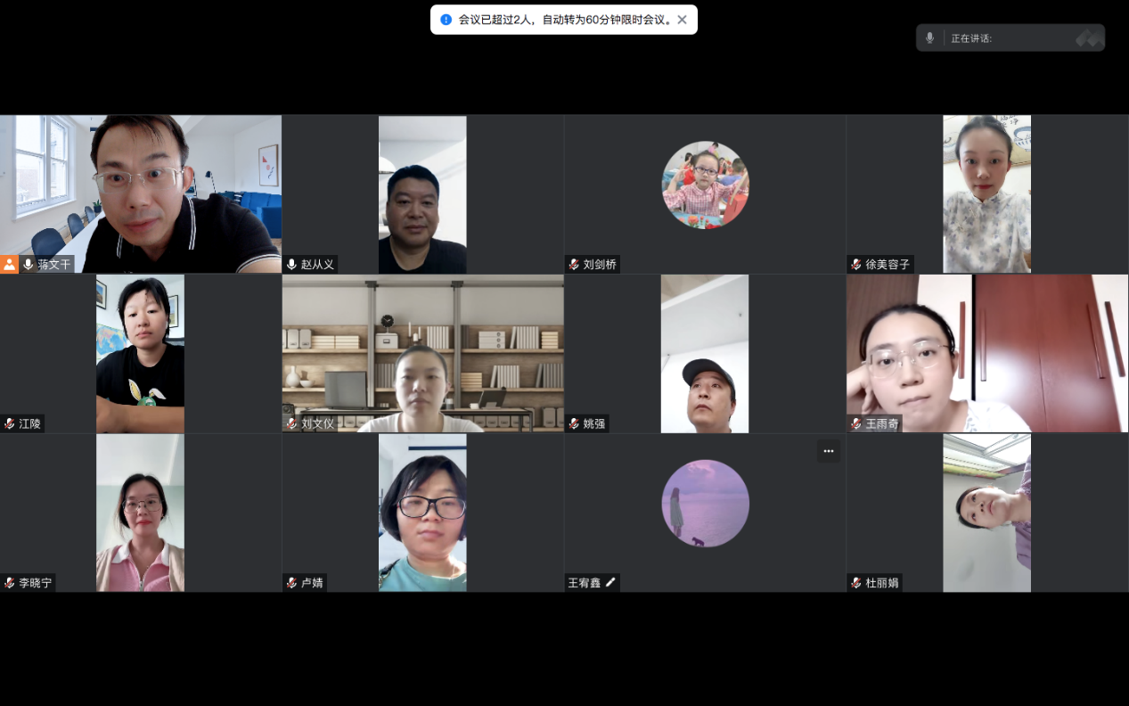 2023年8月3日下午四点半,外国语学院翻译与日语系教师党支部组织暑期线上主题教育集中学习研讨会,支部全体党员准时参会。学习研讨会由支部书记蒋文干主持。
