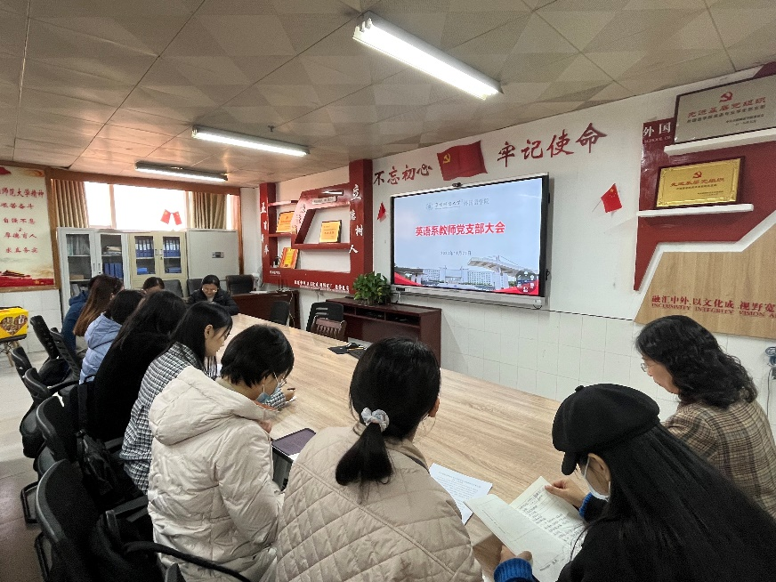 为深入学习宣传贯彻中国工会十八大精神,进一步学深悟透《习近平关于工人阶级和工会工作重要论述摘编》,英语系教师党支部于11月24日上午在景行楼816召开党支部大会,会议由党支部书记张艳主持,英语系教师党支部全体党员参会。