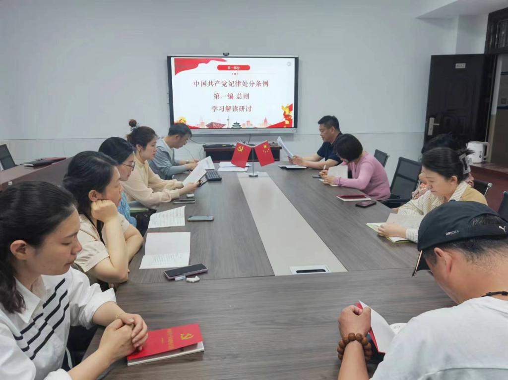 为深入贯彻落实习近平总书记关于党纪学习教育的重要讲话和重要指示精神,扎实开展党纪学习教育,外国语学院翻译与日语系教师党支部于5月16日晚7点在景行楼802会议室召开支部大会,深入学习《中国共产党纪律处分条例》(以下简称《条例》)总则部分。支部全体党员参会。院党委副书记、院长赵从义以支部普通党员身份参加学习会。学习会由支部书记蒋文干主持。