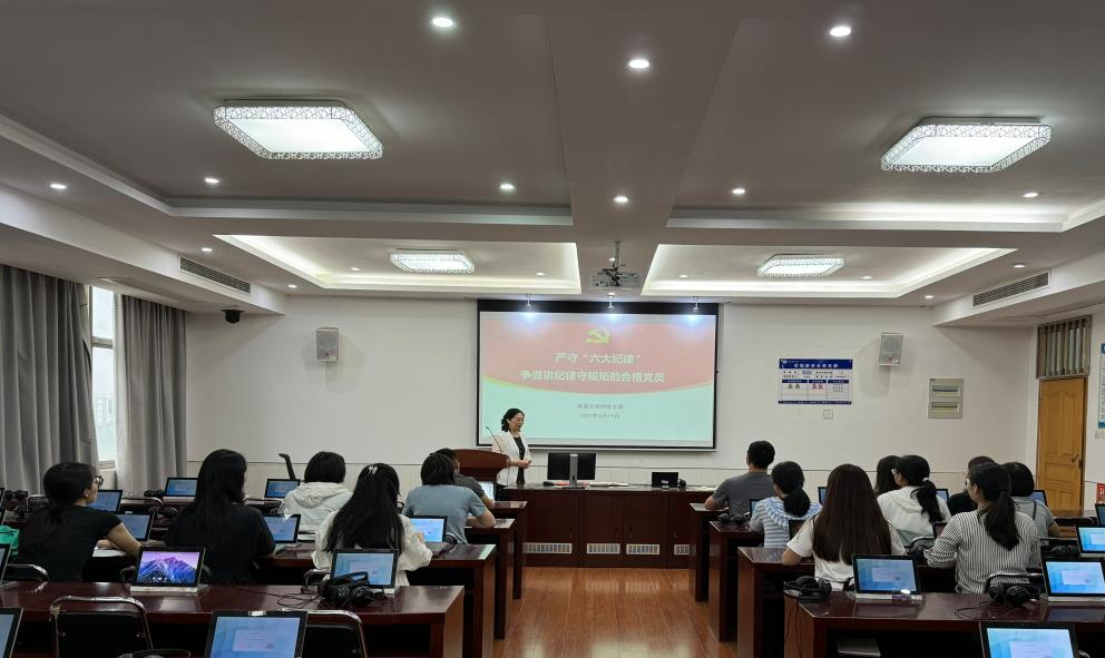 为深入开展党纪学习教育,切实增强党员的党纪意识和规矩意识,准确把握《中国共产党纪律处分条例》修订内容,扎实推进党纪学习教育迈向新台阶,6月19日下午,英语系教师党支部在景行楼503教室举行支部书记讲党课活动,支部书记张艳以《严守“六大纪律” 争做讲纪律守规矩的合格党员》为题,为全体党员讲授党纪学习教育专题党课。