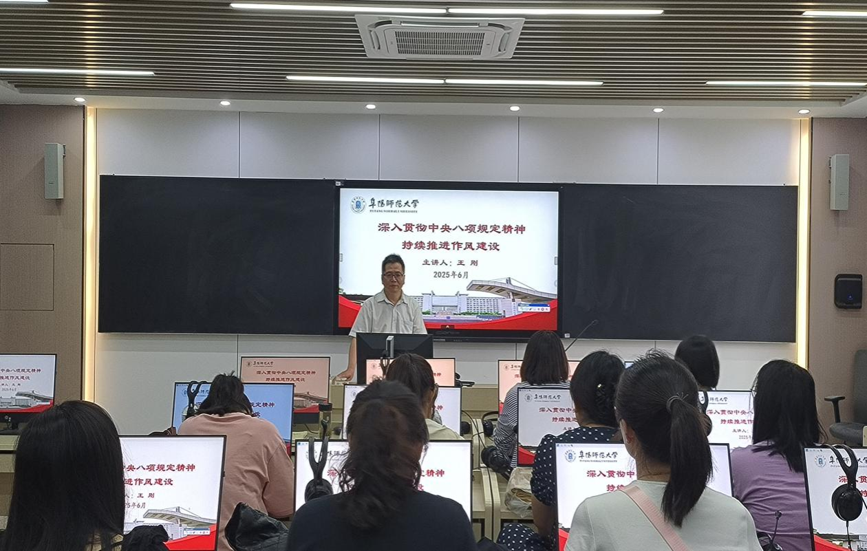 为扎实推动深入贯彻中央八项规定精神学习教育,持续深化作风建设,铸牢党员思想根基,6月25日下午,外国语学院党委副书记王刚以《深入贯彻中央八项规定精神 持续改进作风建设》为题,为大学英语教学部教师党支部全体党员讲授了一堂务实深刻的专题党课。