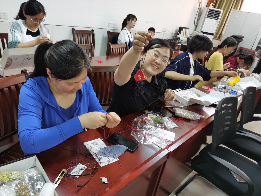 活动在参加人员共同学习习近平总书记在中共中央政治局第三十九次集体学习会关于把中国文明历史研究引向深入,推动增强历史自觉坚定文化自信的重要讲话精神中拉开帷幕。师生齐动手,有的在洗粽叶,泡糯米,调馅料;有的剪花布,穿针线,缝香包。包粽子的师生们舞动粽叶,手指穿梭,纷纷拿出看家本领,青绿的粽叶、雪白的糯米在大家手中瞬间便包成了一个个可爱的粽子。缝香包的师生们同坐桌前,缝制、填充、封口、装饰,一个个形状各异,色彩亮丽的香包被缝制出来,相互赠予。活动现场,师生团结协作,相互请教,互相帮助,欢声笑语,一片祥和。