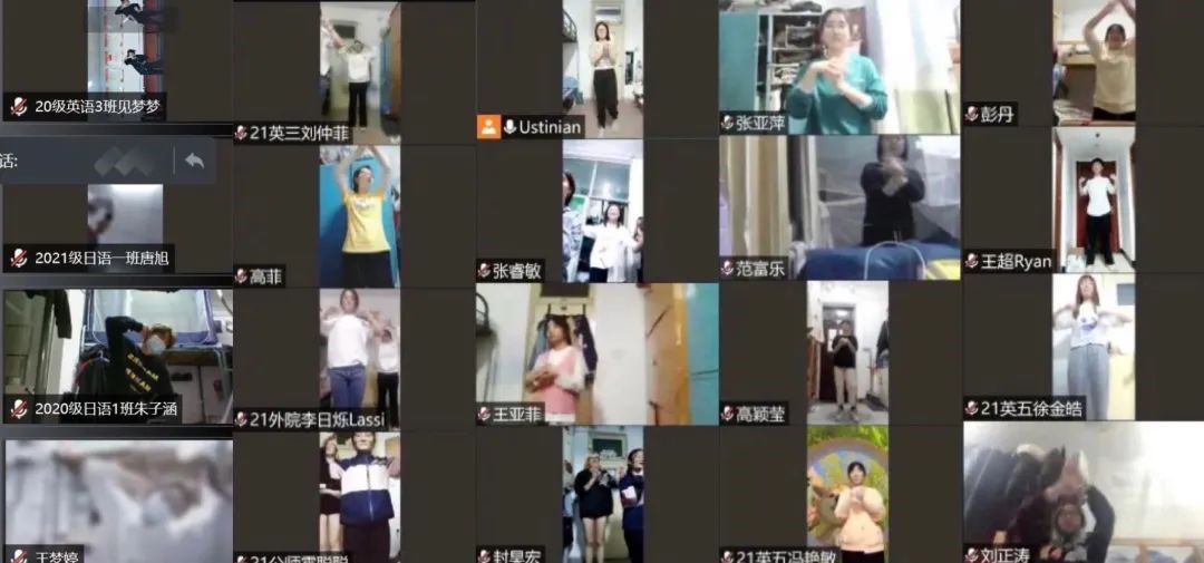 为丰富疫情防控期间的校园生活,增强学生身体素质,缓解学生心理压力,提升学生抗疫信心,近期,外国语学院团委和心理委员联合会通过抖音、腾讯会议等在线平台联合举办了“云动”防疫健身活动,引导学生防疫、运动两不误。