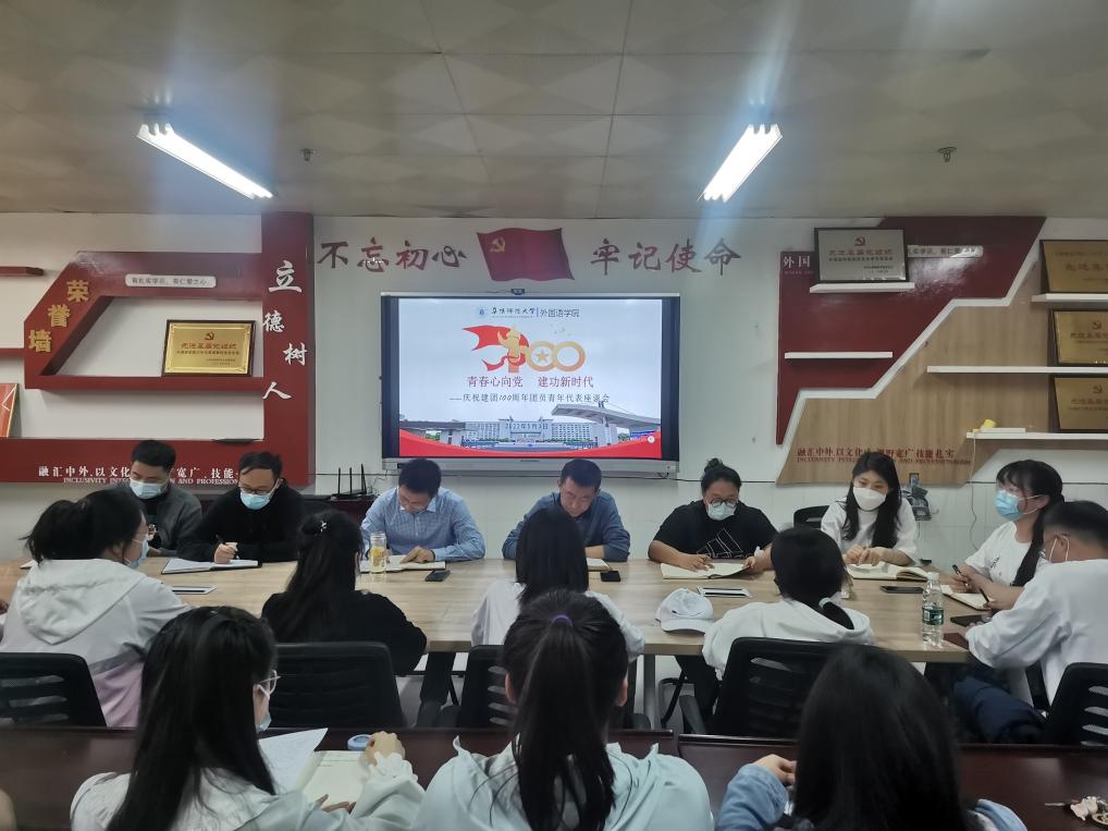 为深入学习习近平总书记在中国人民大学考察时的重要讲话精神,庆祝建团100周年,5月3日下午,外国语学院组织开展“青春心向党·建功新时代”主题团日暨学生思想动态座谈会。学院党委书记刘张飞、副书记戴亮,专职辅导员及各班团支部书记参加会议。会议由学院团委负责人赵雪志主持。