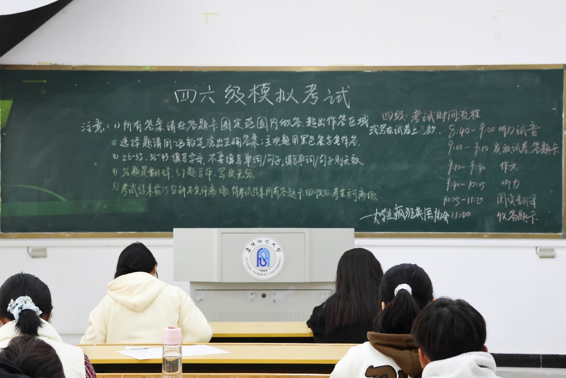 模拟考试的时间安排、题型设置、考场纪律等严格参照大学生英语四六级考试要求,为同学们提供实战模拟考场。考试开始前,同学们有序入场、签到入座,由监考员宣读考试须知,营造出真实的四六级考试氛围。考试期间,同学们自觉遵守考试纪律,收发卷空隙间考场秩序有条不紊。考试过程中,同学们都全神贯注、认真答题,展现了阜阳师范大学学子的诚信风范和钻研态度。