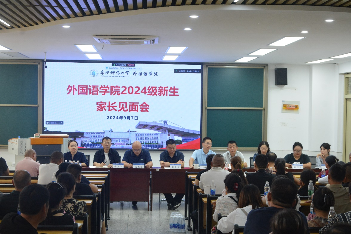 贴“心”安排,家校联动共育人。9月6日下午,学院把握工作重点、抓住报到时机,线上线下同步召开2024级本科生家长见面会,外国语学院党委书记刘张飞、院长赵从义、副书记戴亮、副院长高福猛、各系部主任及新生辅导员参加会议。会议由外国语学院党委书记刘张飞主持。见面会详细介绍了外国语学院基本情况、教学工作、学生工作等,引导家长共同关注学生学业进展、日常生活、心理健康等方面的需求,汇聚家校合力,共育时代新人。