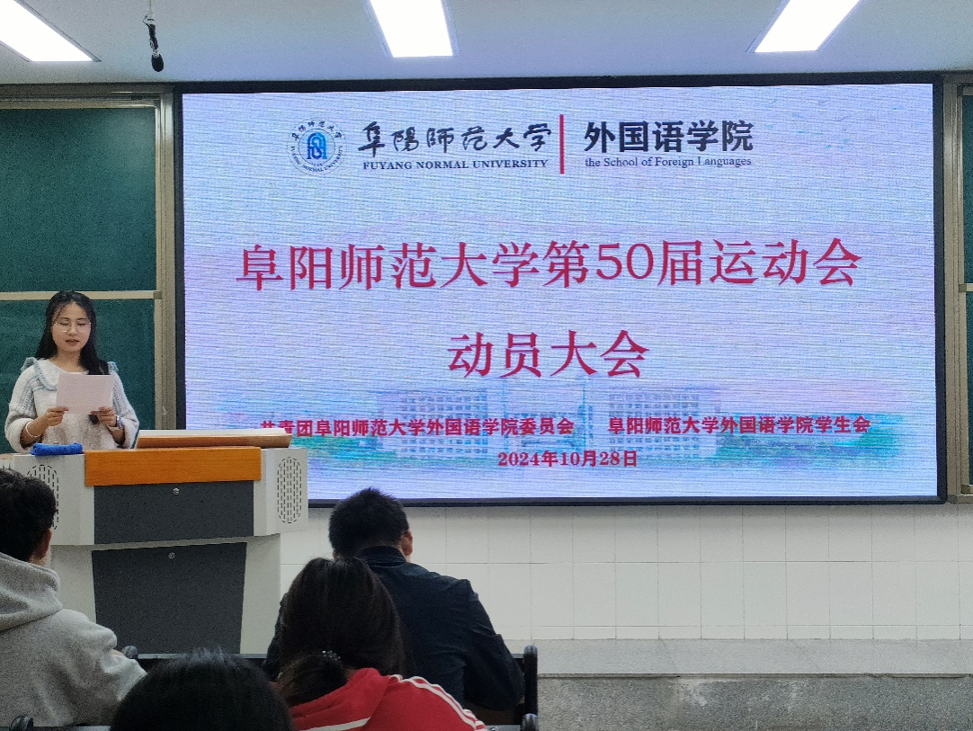 为进一步落实校运会各项工作安排,确保运动会顺利进行,10月28日,外国语学院召开阜阳师范大学第50届运动会动员大会。学院党委书记刘张飞、党委副书记戴亮、全体辅导员及团学组织全体成员参会。会议由学院团委负责人赵雪志主持。
