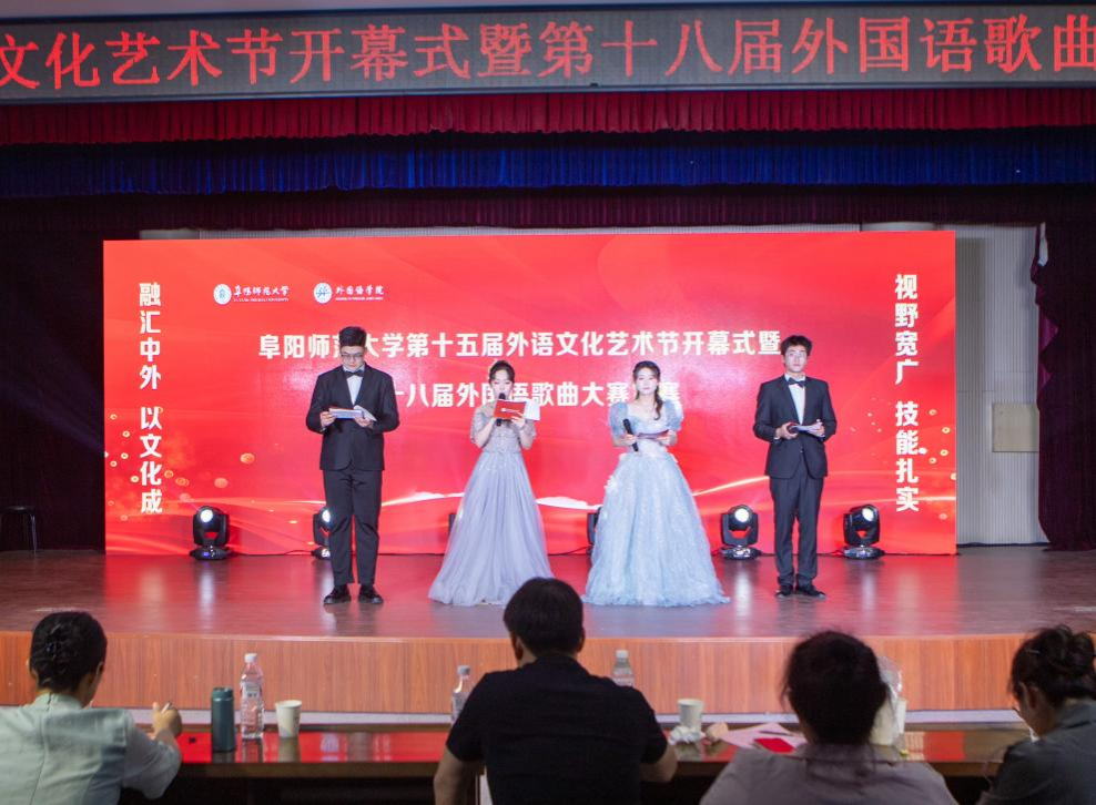为营造外语学习氛围,增强学习实效,5月24日晚,外国语学院在西湖校区景行楼报告厅举办第十五届外语文化艺术节开幕式暨第十八届外国语歌曲大赛决赛。校团委副书记戴亮、杨劲,外国语学院党委书记刘张飞、院长赵从义、副书记王刚等参加开幕式并观看比赛。