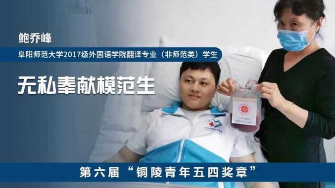 鲍乔峰放弃考研,捐献造血干细胞的大爱行为,是外国语学院“立德树人”丰硕成果的一次生动展示;本次当选2021年5月份“安徽好人”,更是对外国语学院师生党史学习教育成效的一次极大肯定。长期以来,外国语学院高度重视思想政治教育工作,始终坚持“为党育人、为国育才”初心使命,深刻把握时代特征和学生成长规律,创新举措、搭建平台,通过定期开展学生思想动态调研,精心组织开展“党史学习教育”主题党团日、与信仰对话、“青马工程”培训班、“三下乡”社会实践、“学雷锋”志愿服务等,着力深化“五育并举”,扎实推进“三全育人”,不断提升学院人才培养质量,涌现出一大批先进典型,赢得了社会各界广泛好评,为学校高水平师范大学建设贡献力量。