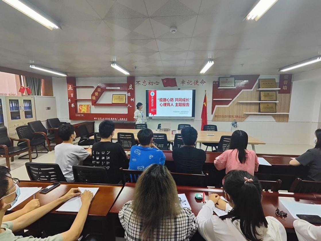 为深入了解和掌握学生心理状况,切实筑牢疫情防控期间学生的心理健康防线,5月16日,外国语学院心理委员联合会通过“线上+线下”双互动方式举办了以“疫路心防,共同成长”为主题的心理健康辅导报告会。学院心理委员联合会成员和各班级学生代表参加辅导报告会。