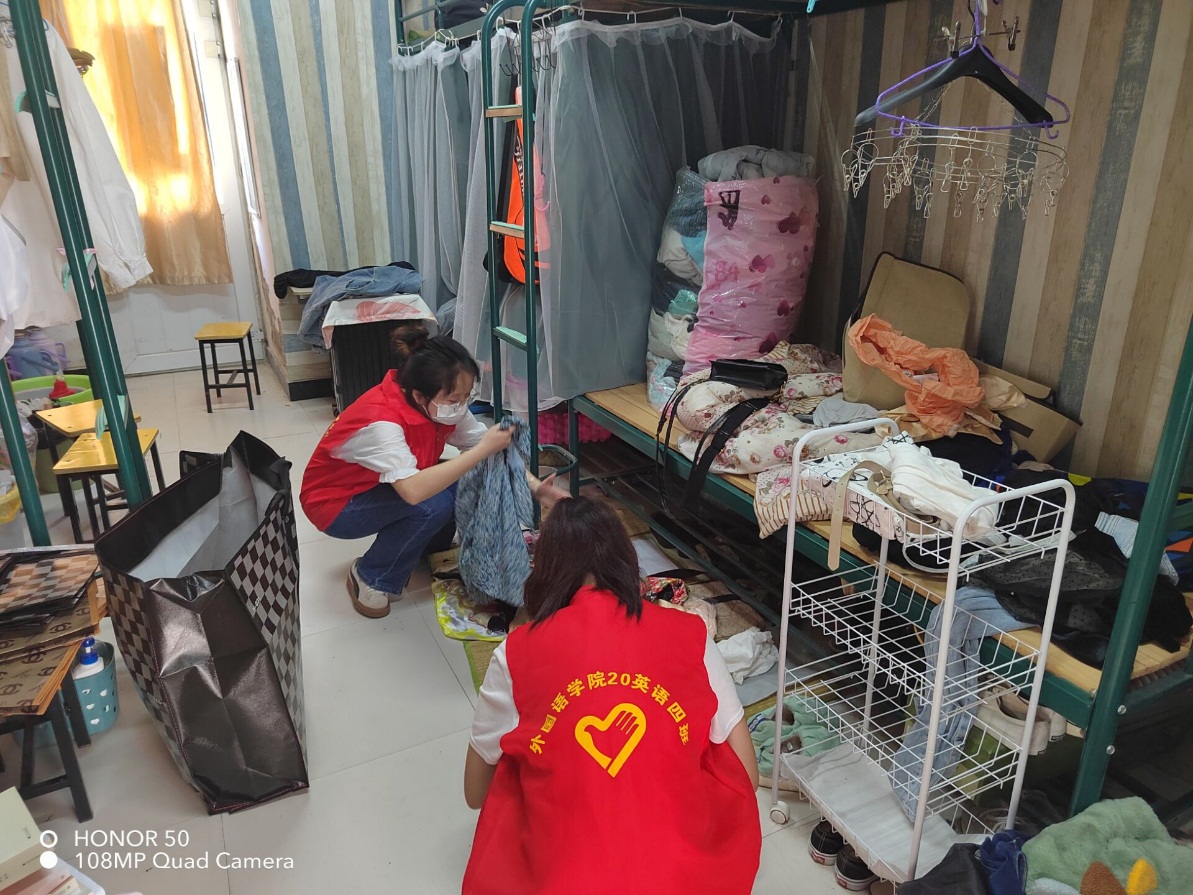 为严格落实校园疫情防控措施,一方面部分在外地上岗就业的毕业生无法及时返校办理离校手续;另一方面,外来车辆人员无法进入校园收拾搬运行李。为切实帮助毕业生解决这一实际困难,学院遴选低年级学生骨干组成志愿服务队,根据毕业生的需求,帮助其收拾行李、打包邮寄、代还书籍、办理手续、搬运送行等,确保每一名毕业生物品都能得到妥善整理,顺利完成搬运。志愿者热情周到的服务、不辞辛苦的工作受到了毕业生们一致赞誉。5月28日上午,学院老师、学生志愿者、宿管阿姨共同护送残疾学生唐琳在校门口登车回家的场景,成了这个略显遗憾的毕业季中最为温馨感人的一幕。