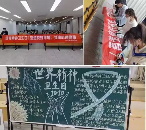 条幅板报强认识。10月11日,外国语学院心理委员联合会以黑板报展示的形式,强化同学们对于“精神卫生”相关知识的认识,分享常见情绪问题的应对策略。广大同学积极参加现场条幅签名活动,传递了“以健康心灵和阳光心态拥抱五彩生活”的健康教育理念,引导学生关注自身心理健康,提高心理调适能力。