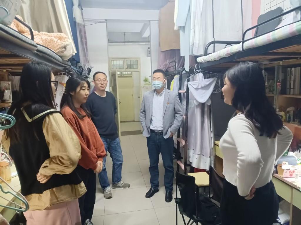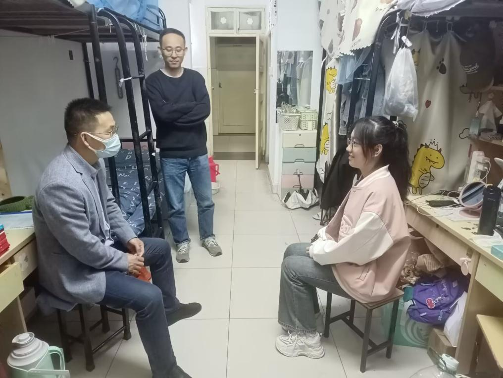 走访调研中,学院坚持以学生为中心,坚持问题导向,聚焦不同年级学生发展需求,回应学生关切,引领学生成长发展。在毕业班学生宿舍,老师们关切的询问了同学们的毕业论文、研究生录取、就业等工作的进展情况,重点围绕就业工作作了深入调研交流,详细解答了同学们在就业方面认知疑惑,勉励广大毕业生积极转变就业观念,抢抓就业机遇,主动参与竞争,争取顺利就业、高质量就业,续写青春精彩华章。在二、三年级学生宿舍,老师们与同学们促膝畅谈,希望同学们珍惜时光、刻苦勤勉,坚持五育并举,不断提升自身的思想道德水平和专业技能素养,鼓励三年级同学及早确定考研目标、认真备考,争取取得一战成硕。在2022级学生宿舍,仔细查看了学生寝室内务、卫生情况,要求同学们高度重视正在开展的军训工作,以此为契机进一步强化纪律意识、集体意识,以过硬的作风、良好的状态、拼搏的精神,充分展示出强国一代大学生的青春风采。