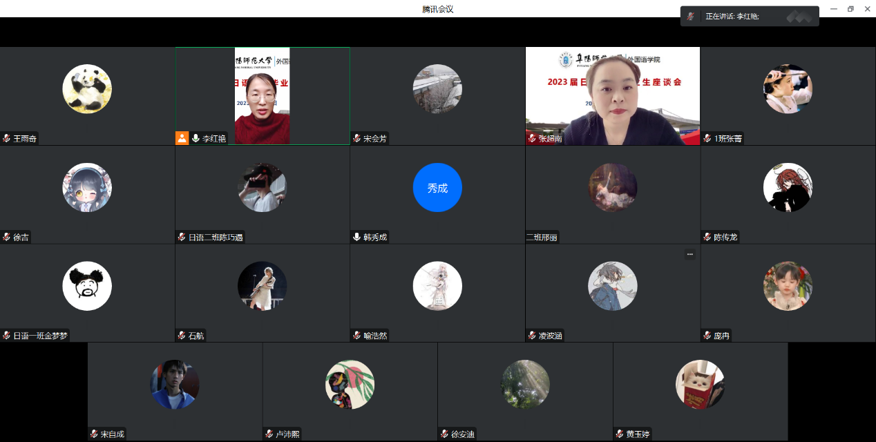 2023年5月11日,外国语学院日语系召开2023届毕业生线上座谈会。会议由日语系主任李红艳主持,日语系老师和2023届毕业生代表参加了此次座谈会。