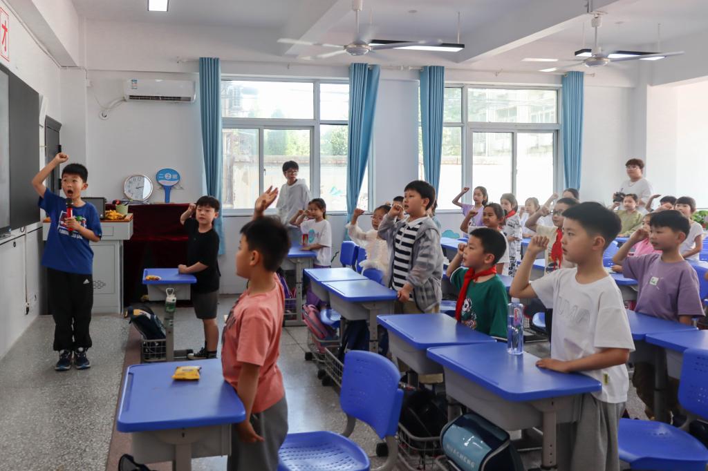 志愿者们给小学生带来生动有趣外语启蒙教育和爱国精神传承课程。根据学段特点,以小切口对学生开展爱国主义教育,用趣味英语生动地讲述了少年英雄王二小的事迹。通过有趣的英语歌曲分享、新颖的课堂交流游戏、精彩的英语动画配音、简洁的革命史介绍、庄严的少先队员宣誓等教学内容和教学形式,活跃课堂氛围,增强小学生体验式学习效果。以寓教于乐、潜移默化的互动交流,向小学生传授英语知识,培养学习兴趣,激发爱国情怀,增强奋进动力。