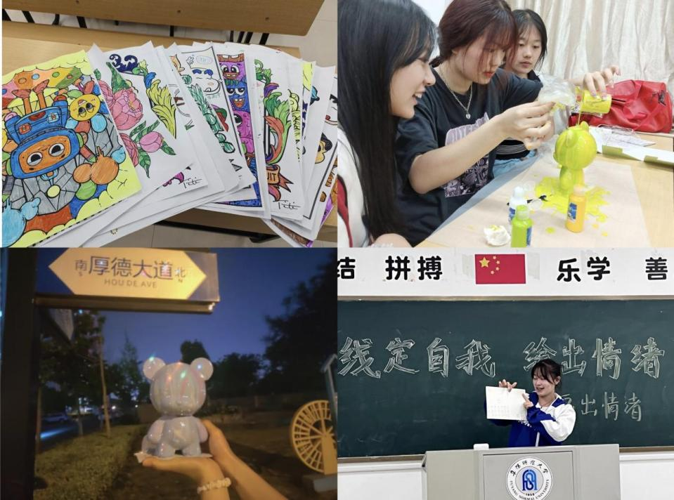 5月17日,外国语学院举办了“线定自我,绘出情绪”、“释放心灵,添色校园”、“流光溢彩,心随画动”等多板块的色彩涂鸦系列活动。五彩缤纷的颜色打开内心世界的大门,在提高同学们动手能力的同时,引导同学们认识美、理解美、欣赏美、创作美。用艺术建构心理防护服,拓宽思维边界,共享艺术疗愈,处理情绪困扰、抚慰创伤体验。