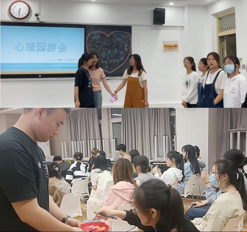 为加强心理骨干队伍建设,增强班级凝聚力,提升心理育人成效,助力学生心智成长,5月以来,外国语学院组织2021级、2022级各班开展心理游园会主题活动。通过知识科普、游戏体验、心理互助、留言打卡等形式,结合学科特色,智趣游戏科普。多形式的心理健康团建活动,有助于学生养成积极乐观、健康向上的心理品质,逐步形成人人参与、朋辈互助的心理育人氛围。