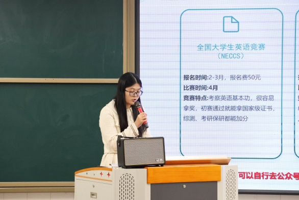 优秀分享,传授经验。12月18日,学院开展“榜样力量 青春领航”优秀学生分享会进班级活动,国家奖学金获得者戴娜娜从专业学习、学科竞赛、等级证书和社会实践四个方面分享自己的经验,鼓励同学们要打开思维视野,积极参与各类竞赛;国家奖学金获得者李佩佩从资助政策、学习经验和资助感恩三个方面进行了分享交流,详细介绍了相关资助政策,强调大学生要常怀感恩之心;安徽省“挑战杯”三等奖获得者、安徽省暑期“三下乡”社会实践活动优秀实践团队负责人余腾龙结合个人“三下乡”、支教等经历,呼吁同学们在夯实基础知识的同时,要不断强化创新思维,在实践中锻炼自己;第十七届中华全国日语演讲比赛校级选拔赛一等奖获得者杨福安围绕大学课程学习、兴趣培养、学科竞赛等方面展开详细的讲述,分享自己的学习方法。
