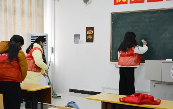 志愿服务,夯实劳育。12月25日,学院开展“心怀感恩 榜样先行”志愿服务活动,受助学生组成志愿服务队开展教室清扫志愿服务活动。志愿者们分工明确,各司其职,热情高涨,干劲十足,一丝不苟地清洁每一间教室。经过志愿者们两个多小时的共同努力,讲台、地面、窗台、黑板、桌面各个角落打扫的干干净净,教室焕然一新,为师生创造了一个干净、整洁、舒适的学习环境。