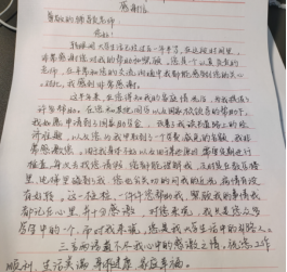 一封书信,传递感恩。12月15日至22日,学院开展了“感谢有你伴我成才”致谢信实践活动,受助同学以书信、邮件、留言等形式纷纷向自己的父母、亲朋、师长、同学、食堂或宿管工作人员等表达谢意。一封封致谢书信,表达了受助学生对祖国的热爱之情、对父母亲朋的感恩之心、对师长的培育之情、对同学的同窗之意、对后勤服务人员的感谢之心,并立志勤奋学习,努力拼搏,回报社会,建设祖国。
