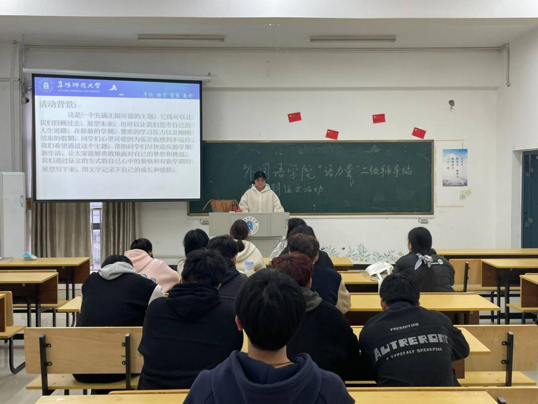 润心赋能“心动力”。为缓解同学们的“假期综合症”,尽快回归校园生活,3月13日晚,辅导站举办了以“新学期展望”为主题的征文活动,通过语言和文字诉说期盼、传递力量,明确努力目标,培育良好学风,进一步促进学生的情感交流,鼓励同学们以饱满的精神投入新学期的学习生活。