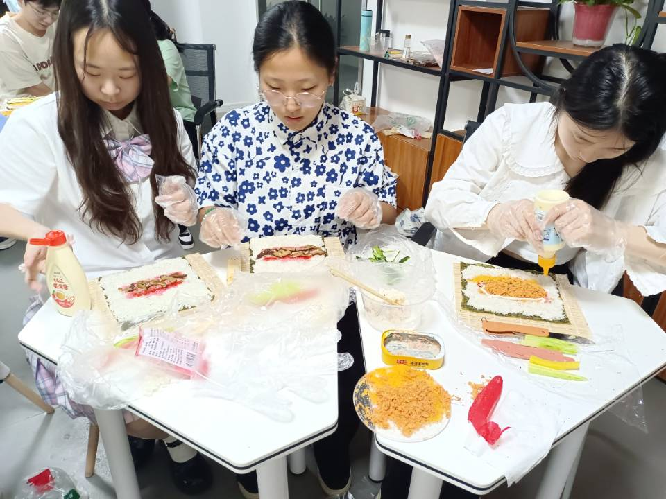 授课结束后,同学们三人一组体验寿司制作过程,一边运用学到的单词及语法知识进行口语交流,一边进行寿司制作,在轻松愉快的氛围中学习了日语专业知识,增进了彼此友谊,锻炼了动手能力。同学们纷纷表示,此次日语授课活动让同学们进一步提升了日语学习的兴趣,增强了团队合作意识,同时了解了日本饮食文化,收获颇丰。