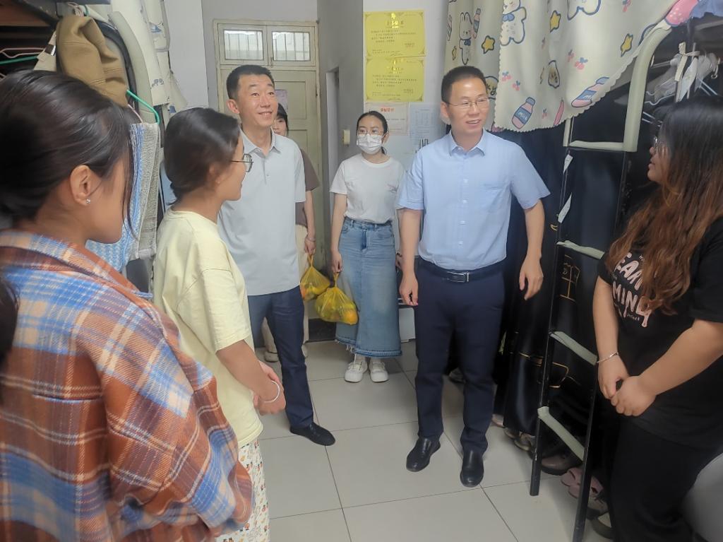 6月9日,外国语学院党委书记刘张飞、副书记戴亮和辅导员走访学生宿舍,深入了解学生生活状况和思想动态,并为留校学生送上端午祝福。