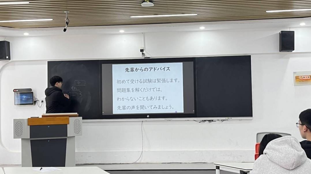 为提升学院日语专业学生的学习能力,让学生享受到更加丰富的日语学习资源,提高日语国际能力测试(JLPT)通过率,3月15日,外国语学院樱和日语协会于景行楼 402教室举办JLPT应试技巧分享活动。社团指导教师刘雨晴、日籍教师佐藤匠及40名社团成员参与此次活动。