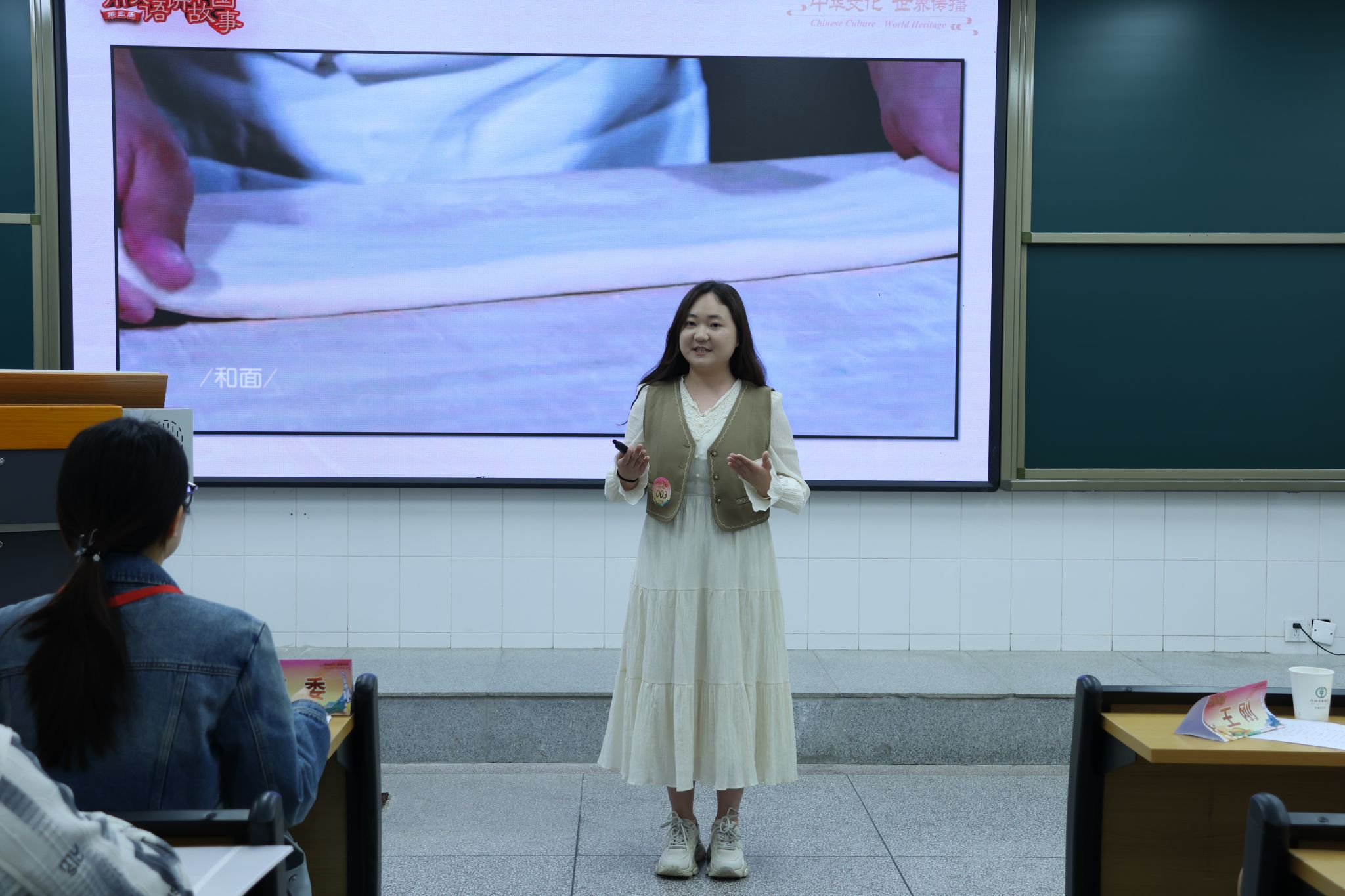 本次比赛自去年12月初征集作品以来,共收到我校17个学院提交的310作品。经过初赛评选,共有17名选手脱颖而出参加本次校级决赛。决赛分主题演讲和中国文化才艺展示两个环节。现场选手们英文介绍了皖北地区的风土人情。在才艺展示环节,选手们借助朗诵、五禽戏、剑舞、剪纸、戏曲表演等多样化的形式展示了中国文化的独特魅力和深厚底蕴。经过激烈角逐,教育学院尹一冰同学和外国语学院杜凡楠同学荣获一等奖,将代表我校参加下一轮的省级决赛。