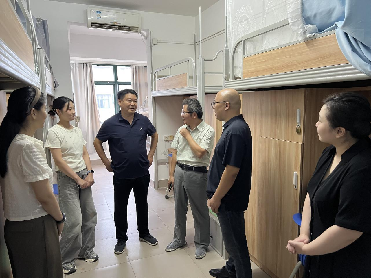 为进一步了解新生入学住宿情况,传递学院温暖与关怀,9月6日,外国语学院党政班子成员及新生辅导员深入2025级新生宿舍,与同学们亲切交流,帮助新生快速适应大学生活。