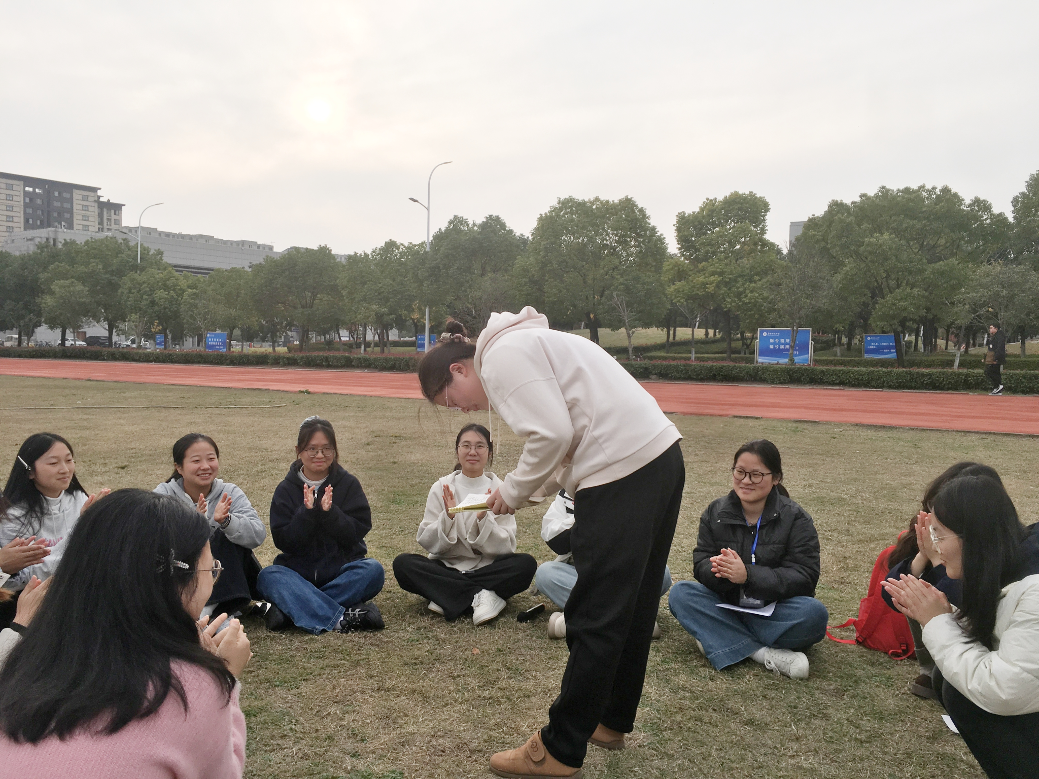 11月23日,“秋声诵诗·双语疗愈会”在南操场举行。在中英双语诗集的环绕中,同学们以声传情,诵读精选诗篇,分享了“愿以诗为帆,渡心灵之海”等真挚感悟,在集体的聆听与回应中汇聚成温暖的声浪,实现了在优美语言韵律中的集体心理支持与心灵共振。