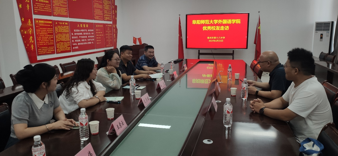 在亳州十八中,高福猛和在该单位工作的优秀校友代表举行交流座谈会,感谢校友对母校一直以来的关心支持,欢迎他们常回家看看,一起见证学校和学院发展。