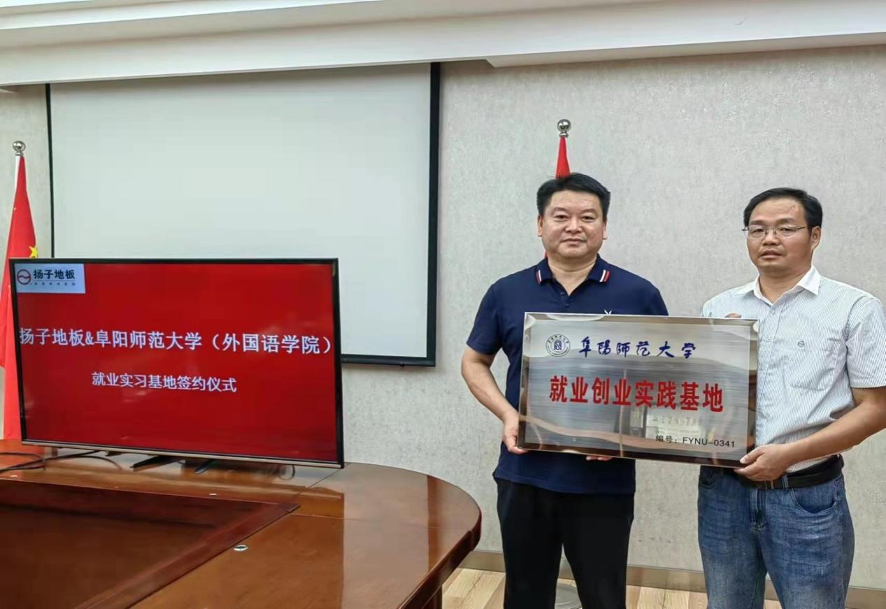 赵从义一行在张少兵的陪同下,先后深入到公司生产基地、研发中心、产品中心、销售中心等地进行参观考察。双方在前期沟通的基础上,进一步深入交流了企业对外语专业人才的能力素质需求、挂牌建设大学生就业创业实践基地的相关举措,并就校企产学研横向合作达成初步意向。双方议定,作为阜阳师范大学大学生就业创业实践基地,安徽扬子地板股份有限公司今后将积极吸纳更多我校毕业生赴企业工作或为毕业生提供更多实习见习机会;外国语学院也将积极发挥外语人才和专业优势,积极主动为企业生产经营提供语言翻译服务和智力支持,广泛宣传,积极引导毕业生赴企业工作,服务企业发展壮大。