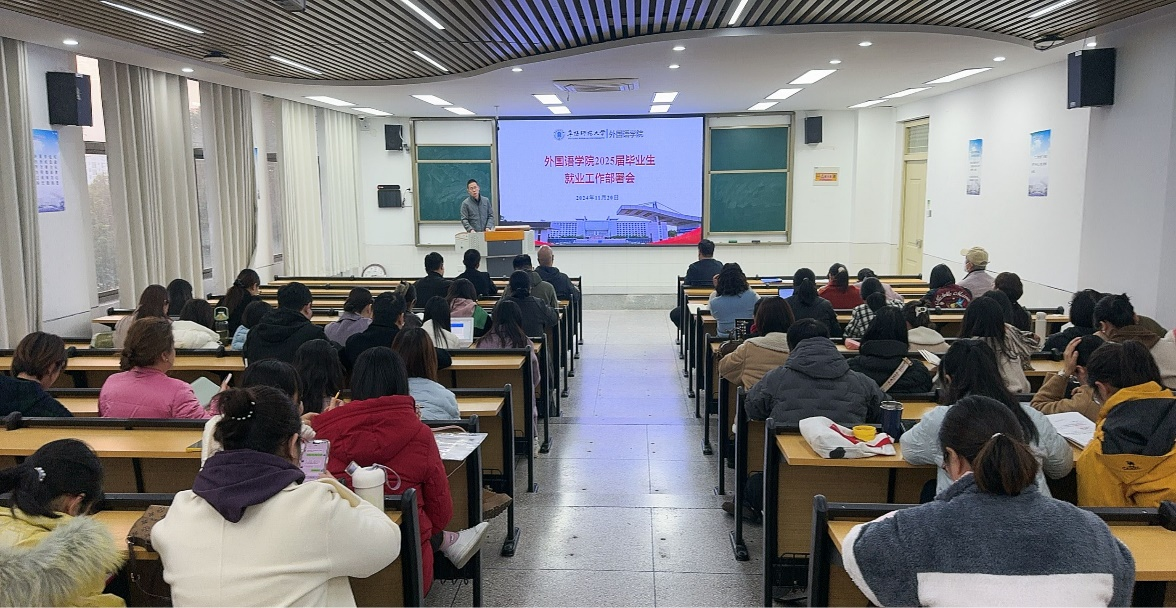 为准确把握毕业生就业工作面临的新形势,全力促进2025届毕业生实现更高质量充分就业,11月20日下午,外国语学院在景行楼401召开2025届毕业生就业工作部署会,全面总结2024届毕业生就业工作,安排部署2025届毕业生就业工作。学院全体教职工参会,会议由党委书记刘张飞主持。