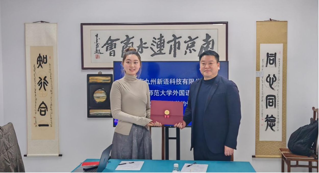 赵从义介绍了学院的专业设置、师资力量以及近年来毕业生的就业情况。他强调,外国语学院一直致力于培养具有国际视野、跨文化交际能力的高素质外语人才,希望与九州新语科技有限公司在实习实训、就业指导、产学研合作等方面开展深度合作,共同推动人才培养与企业需求的精准对接,为毕业生提供更多高质量的就业岗位和实践机会。