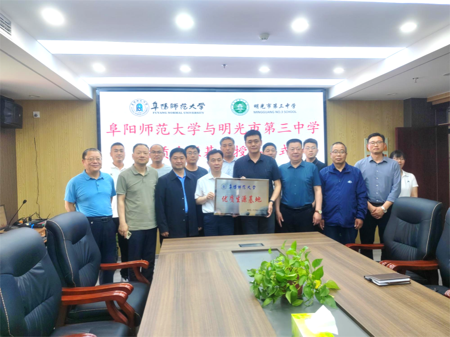方强一行在相关学校负责人陪同下,实地参观校园环境,了解学校办学理念、师资力量、教学设施、教风学风及教育教学成果。座谈会上,方强对各中学长期为学校输送优质生源表示感谢,并详细介绍了阜阳师范大学的办学历史、重大成就、学科优势、师资力量、人才培养模式和校园文化,详细说明了学校近年来的招生计划、高考录取分数线及位次情况。认真听取了各中学在高校招生、专业设置、人才培养等方面的意见建议,希望更多优秀学子积极报考阜阳师范大学。双方围绕教育协同发展规划,课程体系贯通、教师联合培养、学生综合素质提升等方面共商未来发展合作,并签署“优质生源基地”共建协议书,举行授牌仪式。