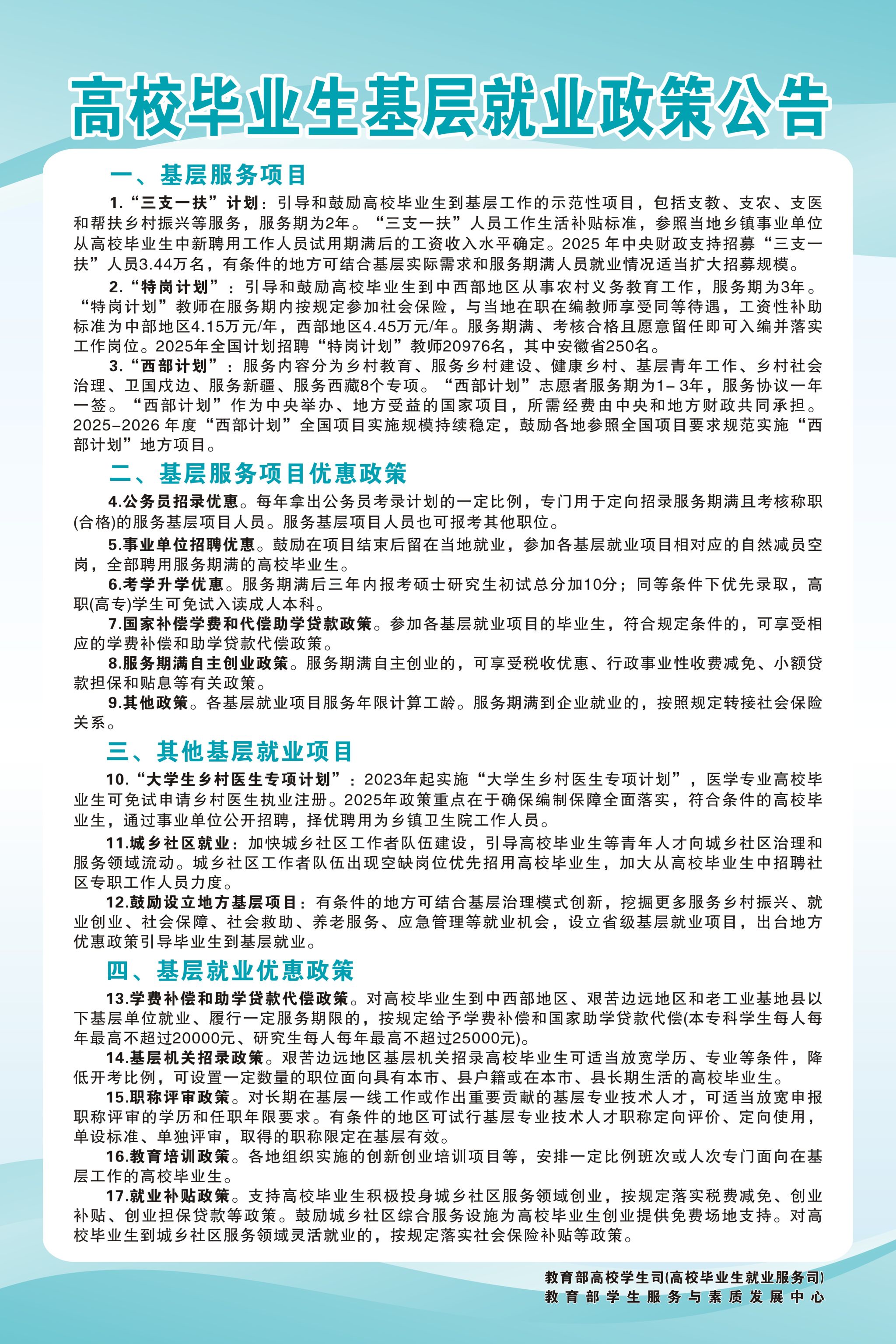 高校毕业生就业、创业政策公告
