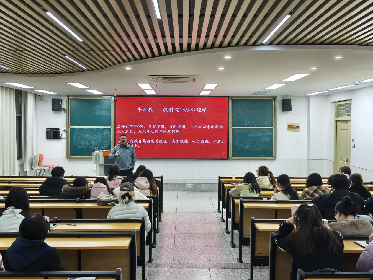 牛北辰结合自身丰富的职场履历,围绕“如何在人才云集的世界500强与上市公司中突围成为高管”“临近毕业如何选择未来发展方向”“如何在复杂环境中找到匹配自身的发展机会”“如何实现职场高质量发展”四大核心话题展开深度分享。他以亲身经历为切入点,从职业定位、能力提升、资源整合等方面,拆解了职场进阶的关键逻辑,强调“精准发力+持续深耕”的重要性,鼓励毕业生以长期主义视角规划职业成长,既要夯实专业基础,也要培养跨界思维。